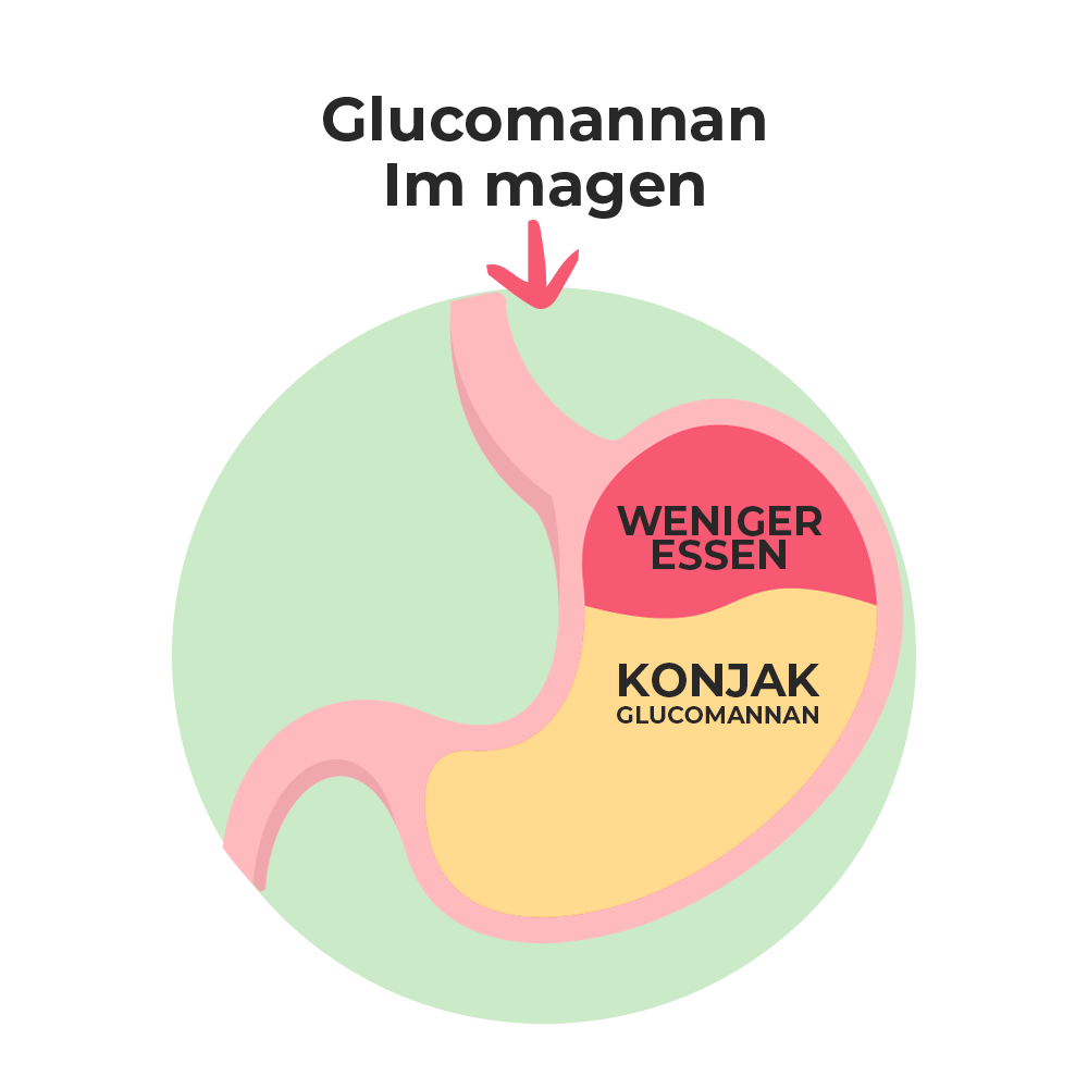 Il glucomannano assorbe molta acqua*. Dopo aver mangiato la pasta cruda, ad esempio, il glucomannano si espande nello stomaco e nell'intestino e ci si sente sazi. Inoltre, l'appetito per i cibi ad alto contenuto calorico si riduce e di conseguenza si perde peso più velocemente.