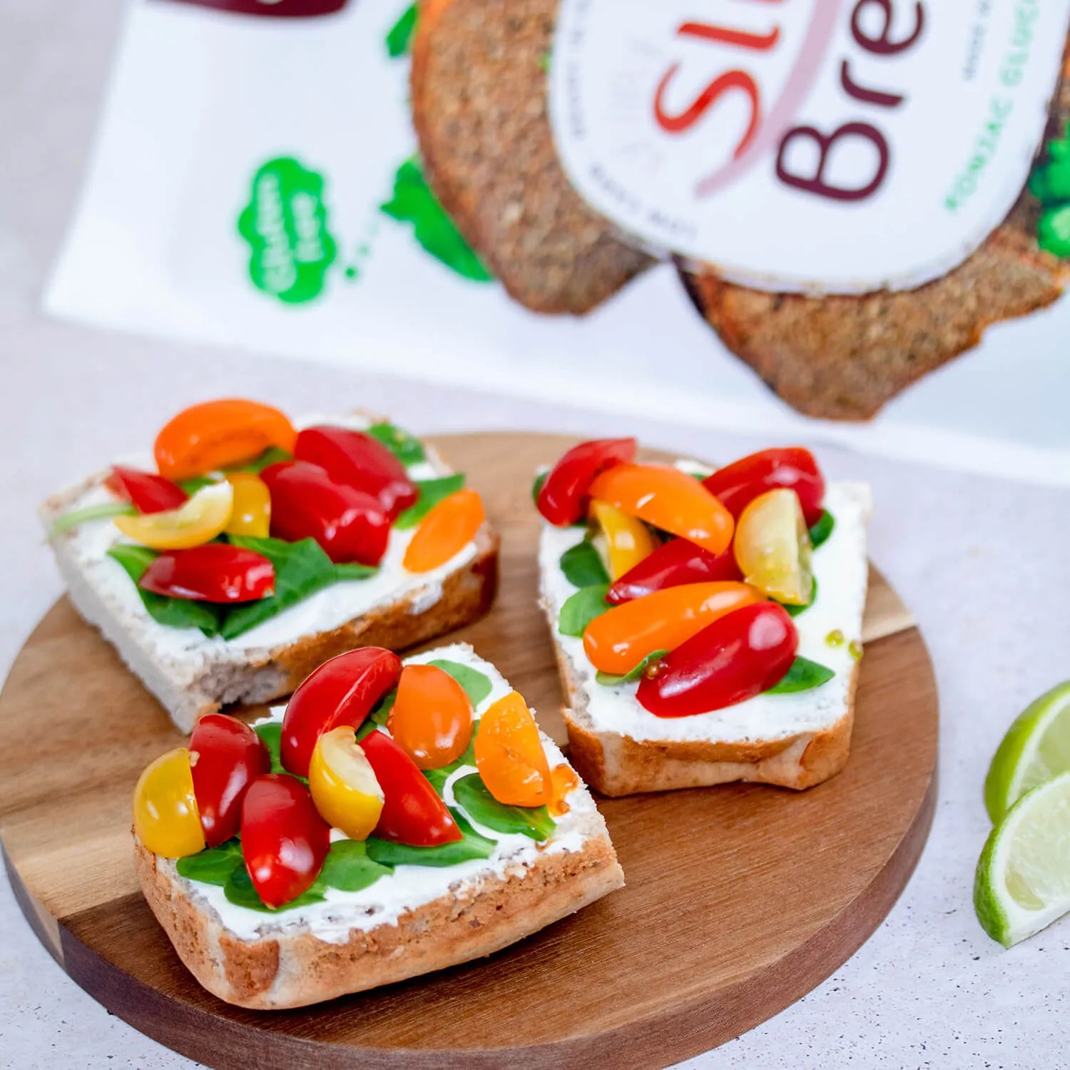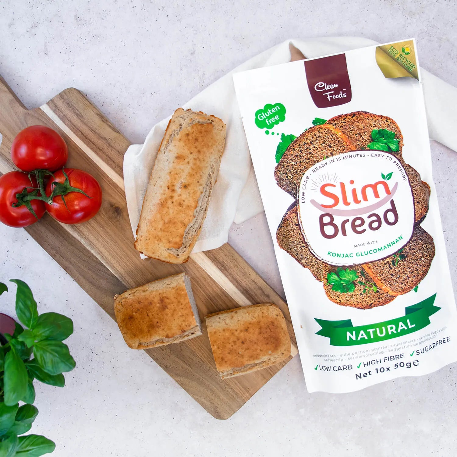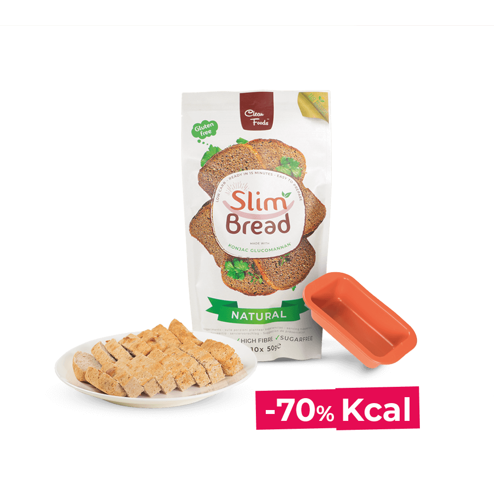 SlimBread fornisce il 70% di calorie in meno rispetto al pane tradizionale. Apporta proteine vegetali e fibre. Non contiene glutine, zucchero né farina di frumento. Per il nostro pane utilizziamo la fibra Glucomannano: una sostanza che ti aiuta a perdere peso durante una dieta ipocalorica. Aiuta anche a ridurre il livello di colesterolo se ne consumi 4 g al giorno.